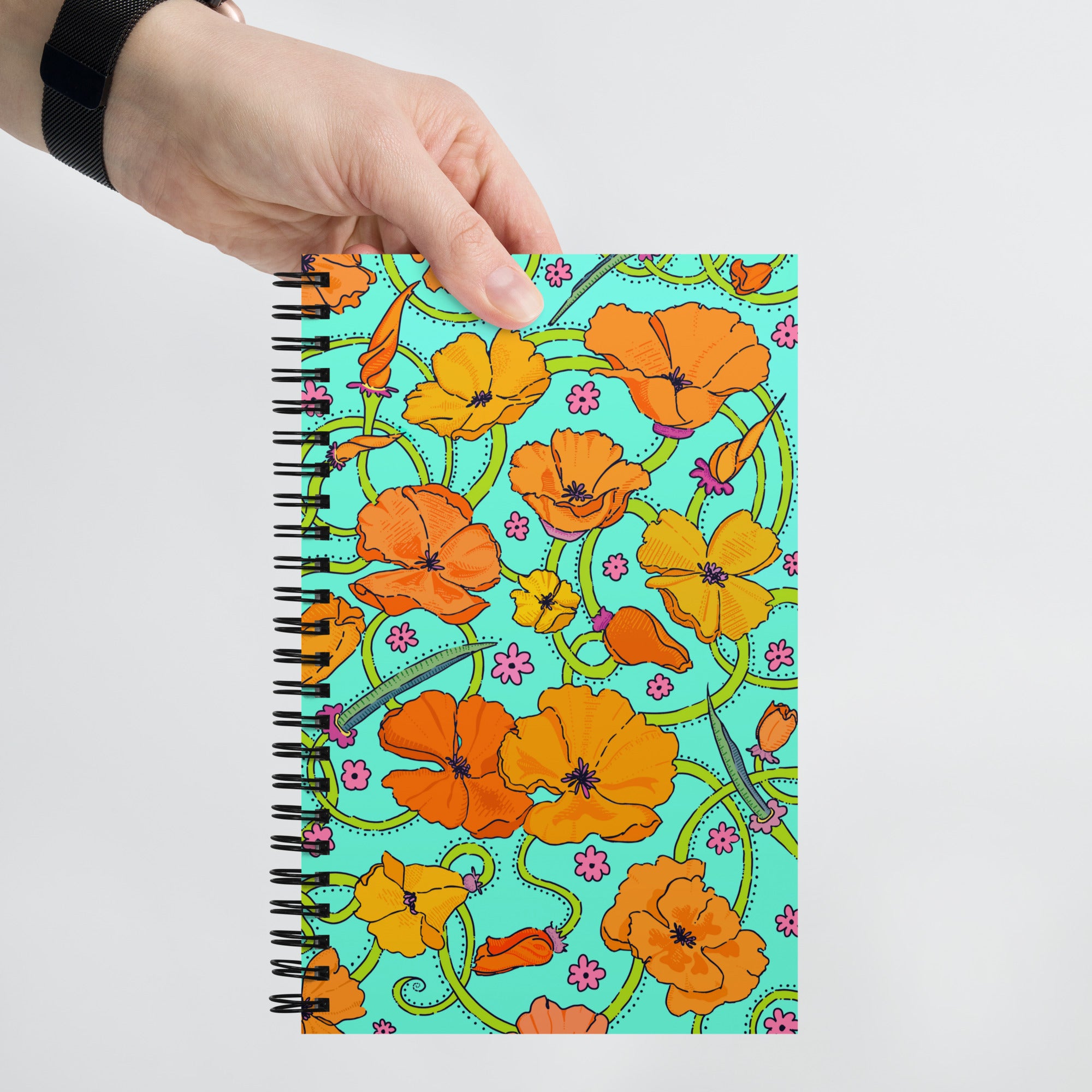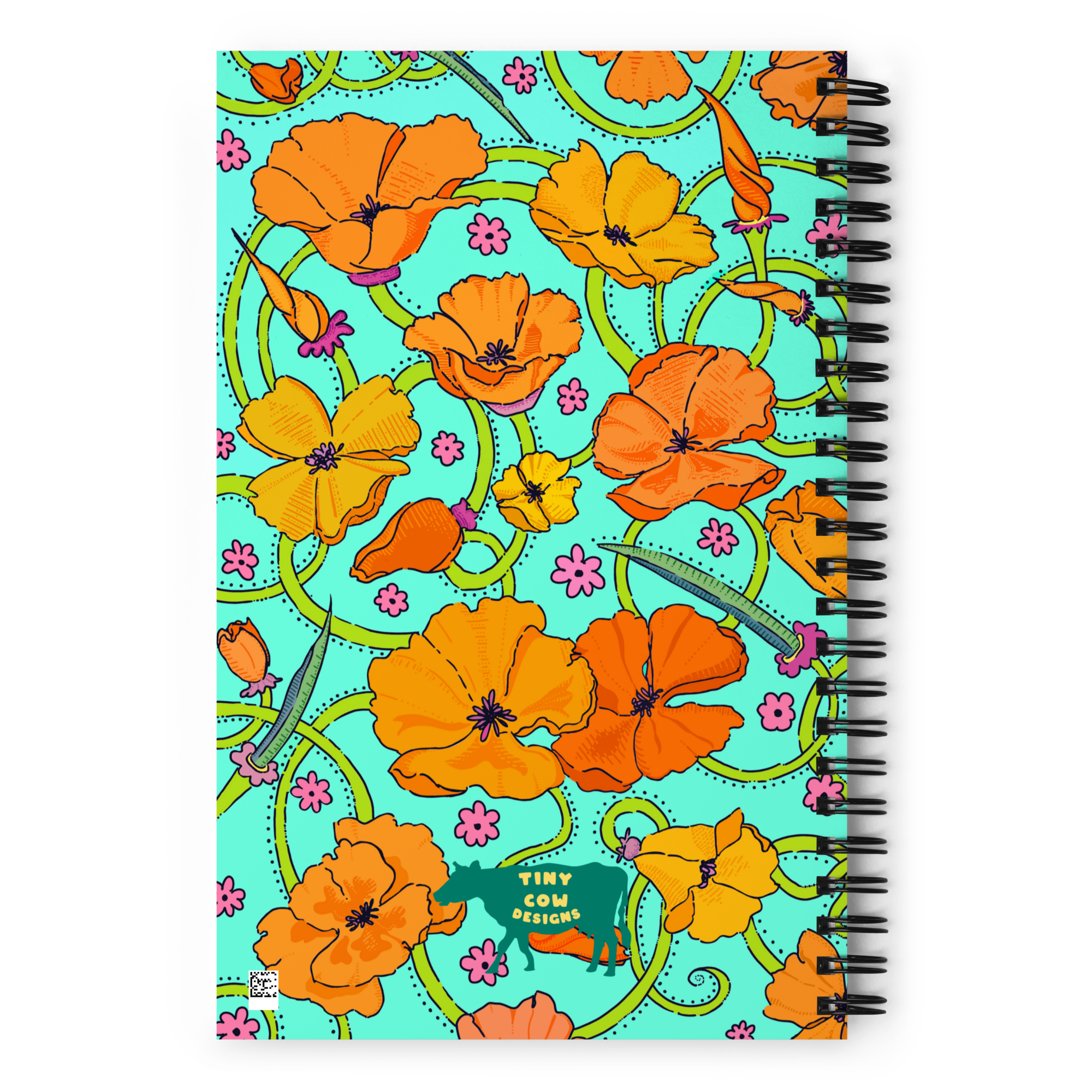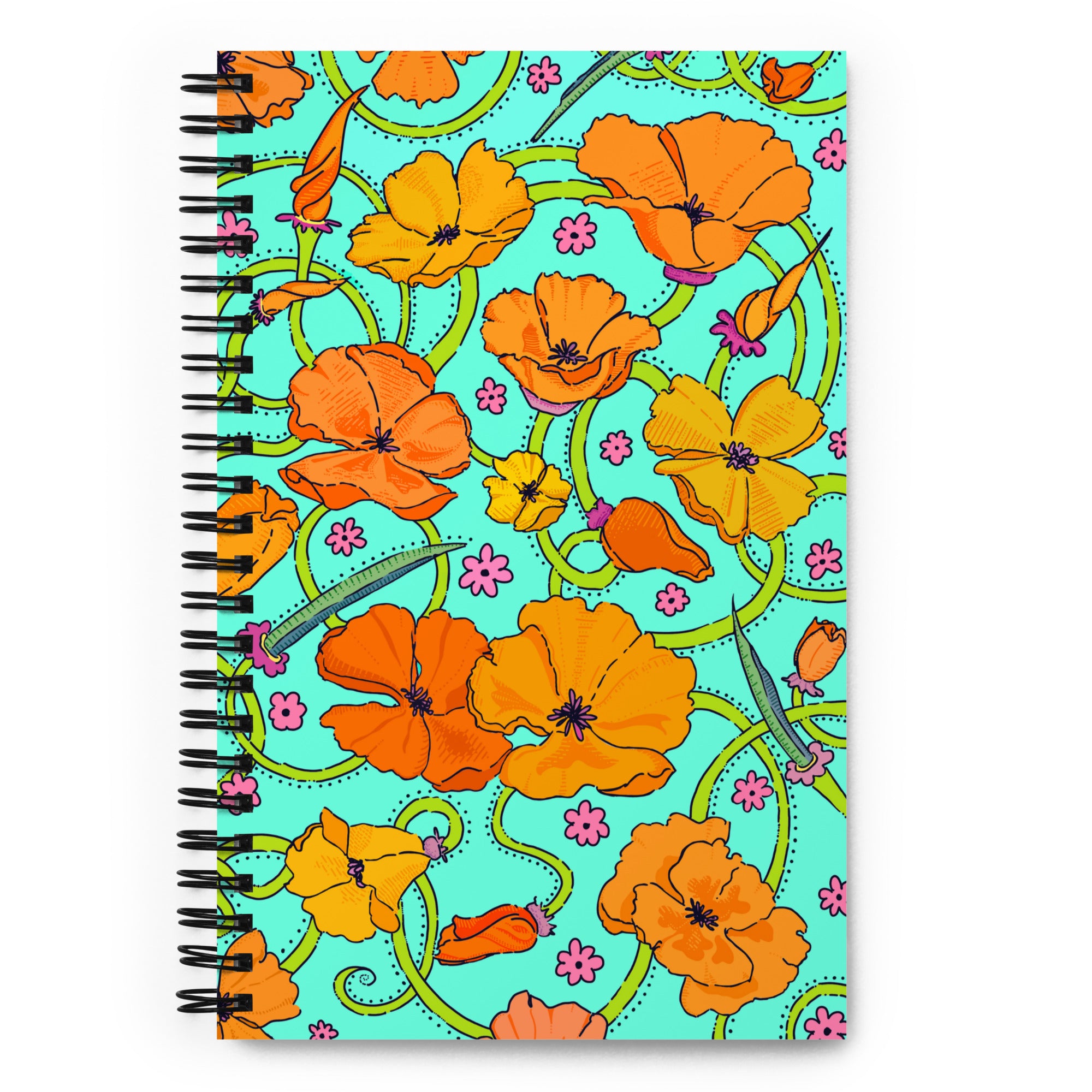 This California Poppies Spiral Notebook is just waiting to be used! The only thing that's more gorgeous than this notebook is the beautiful thoughts you'll put inside it. This California poppies pattern was lovingly designed by someone born and raised in the sunny state. Enjoy the twists and twirls of these blooms. The longer you look, the more fine detail there is!